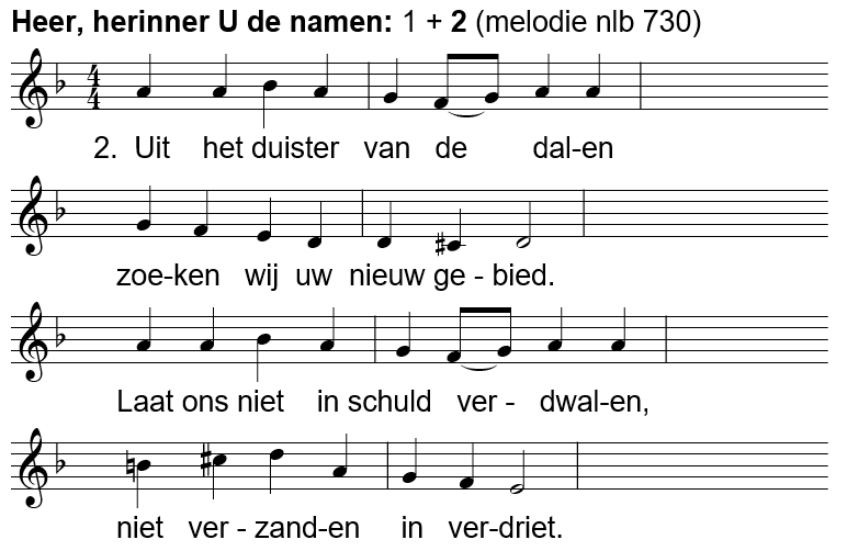 Lied: Heer, herinner U de namen (tekst Kees van der Zwaard) op de melodie van NLB 730