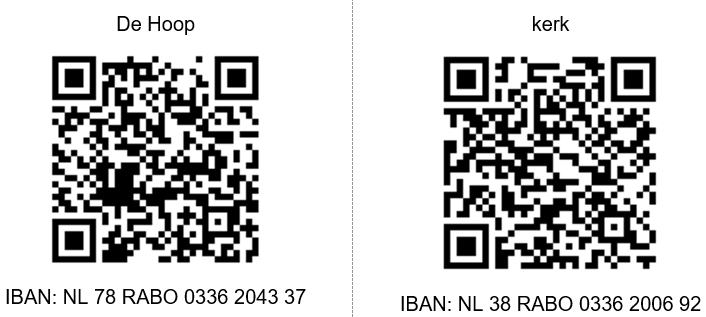 Collecte: 1. de Hoop, 2. kerkrentmeesters
